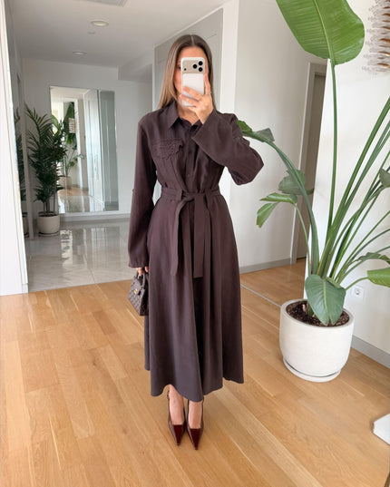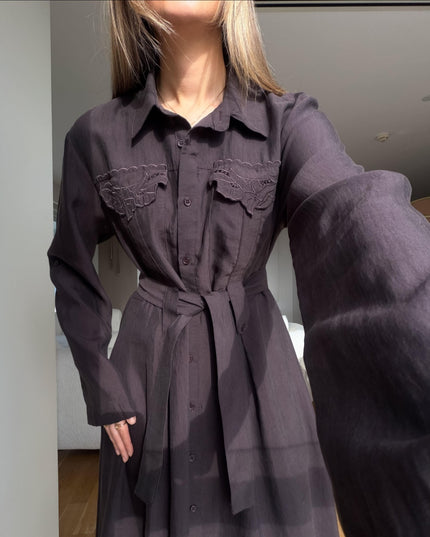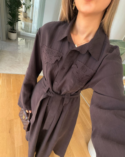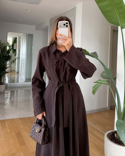 Andel Embroidered Detail Dress – Brown