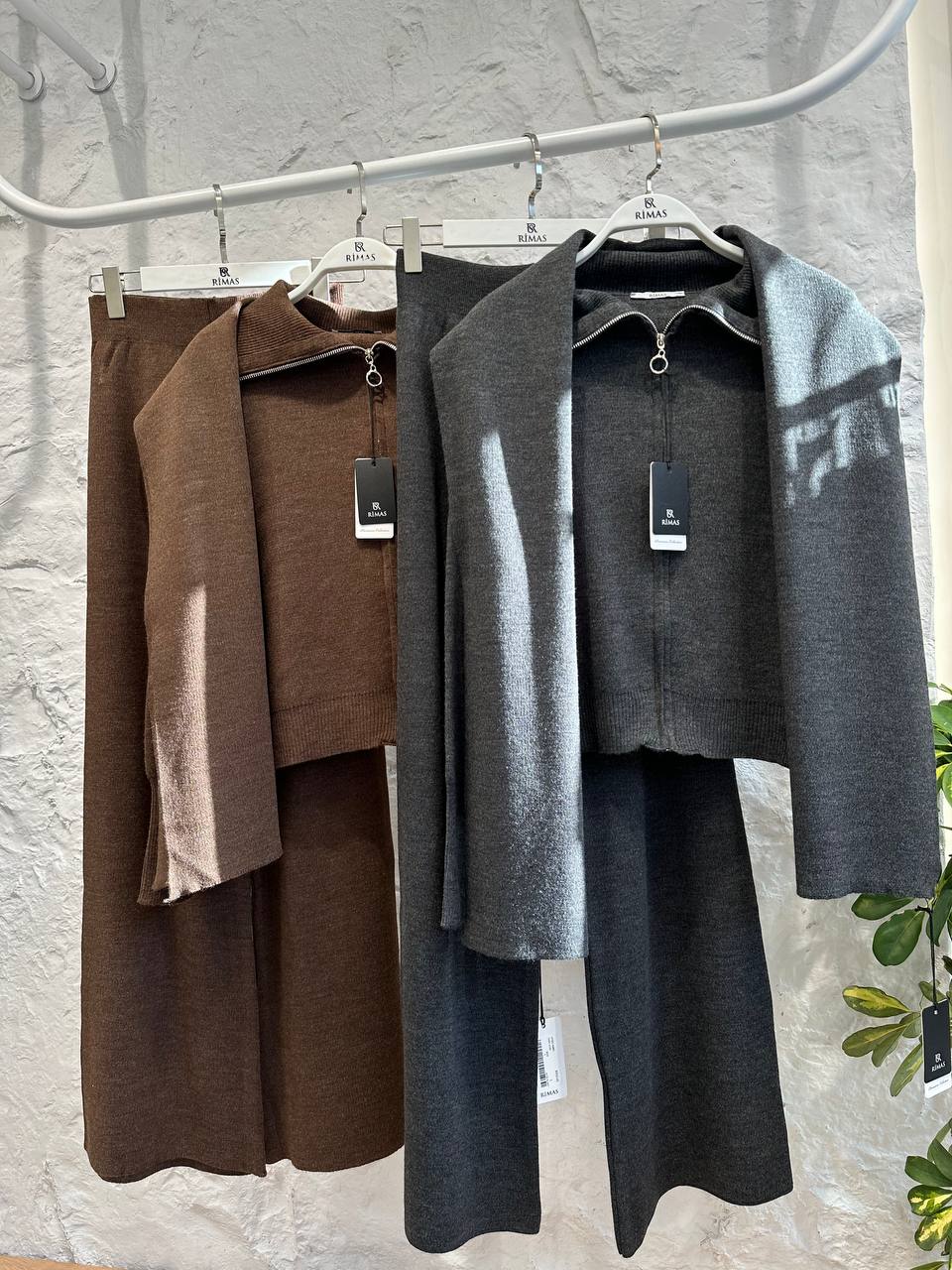 Unwind in ultimate comfort and chic style with this cozy knit set. Featuring a relaxed hooded top and matching wide-leg pants, it's perfect for lounging or casual outings. The soft, breathable acrylic fabric ensures all-day comfort, while the rich coffee brown hue adds a touch of earthy elegance. Effortlessly blend comfort and trend with this versatile two-piece ensemble.