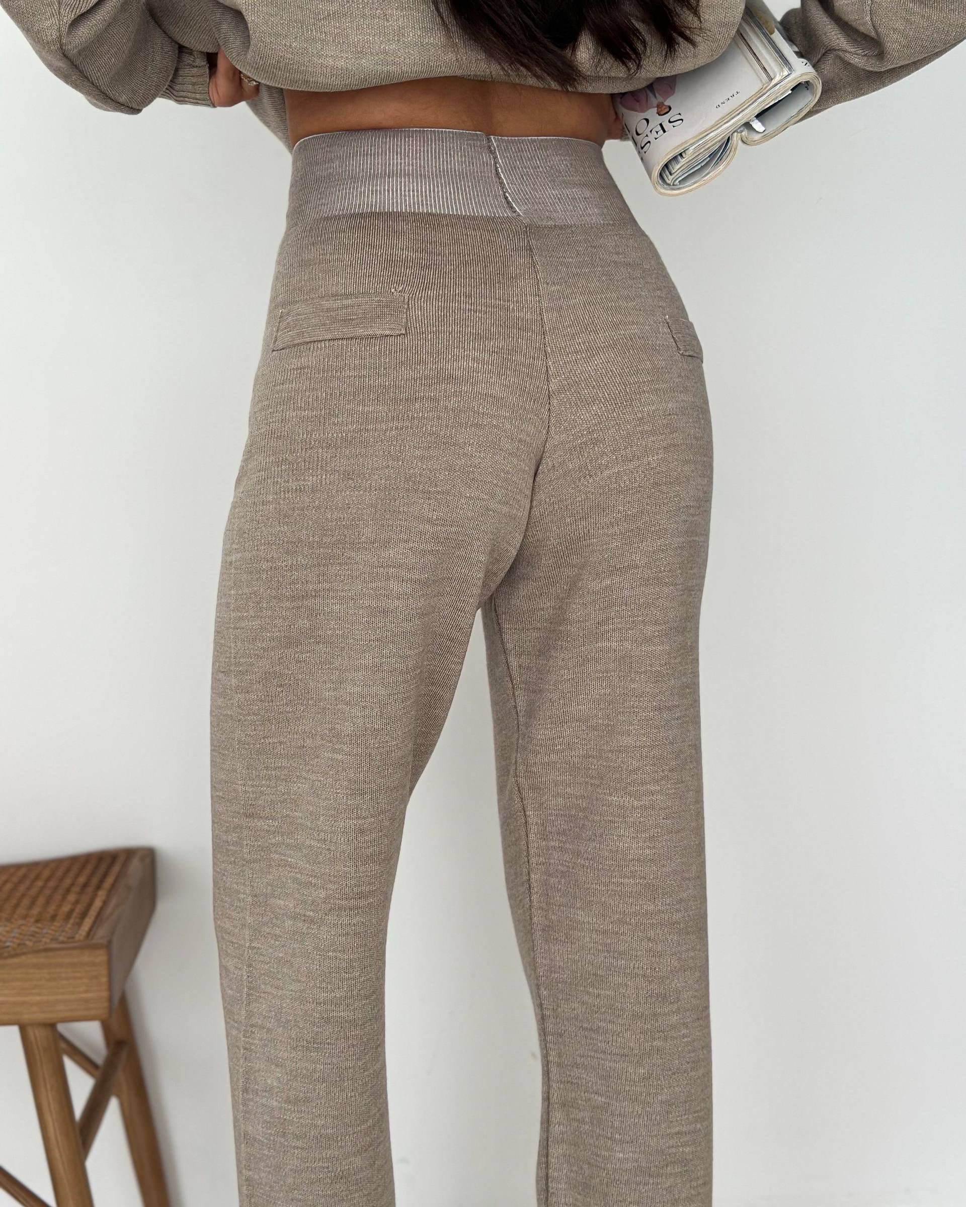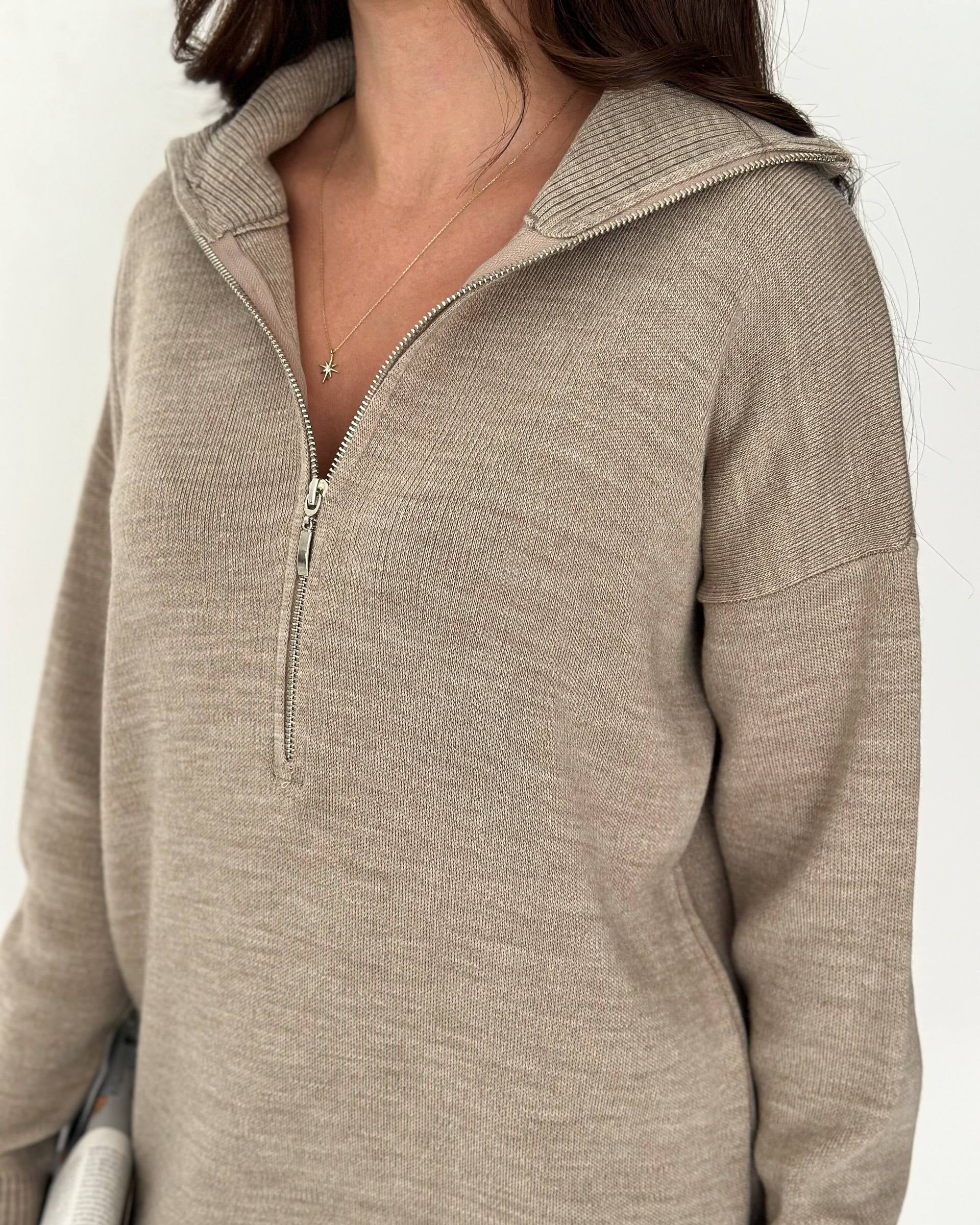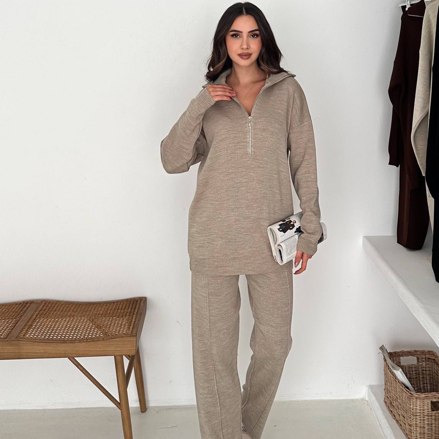 The beige color gives a neutral, minimalist look that’s perfect for lounging at home, running errands, or casual weekends. With its modern silhouette, easy zip neckline, and ribbed detailing, this lounge set brings together style and comfort in one timeless outfit.