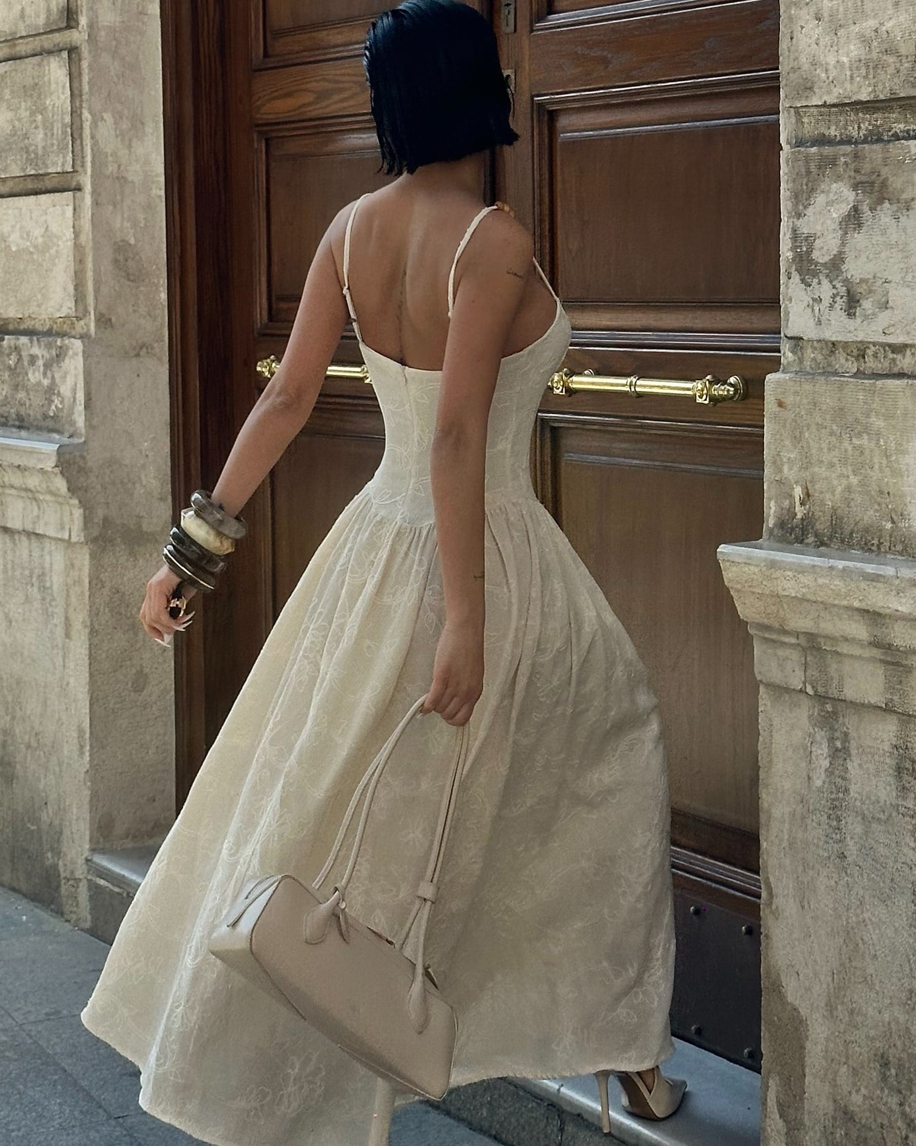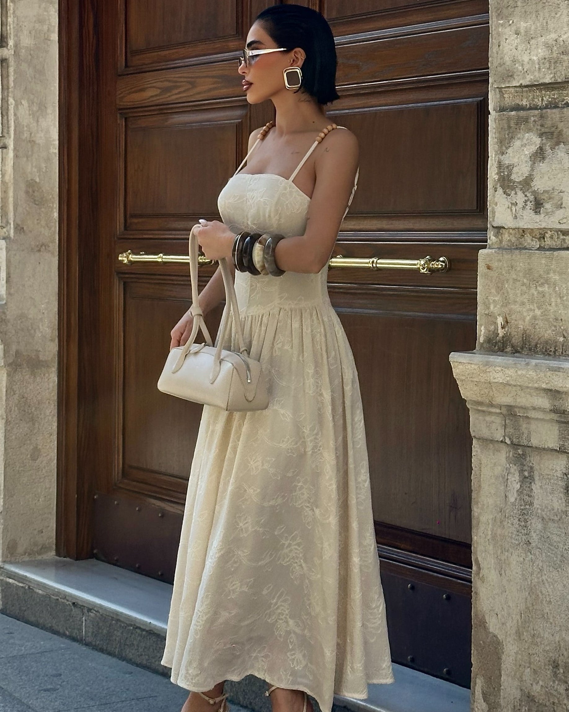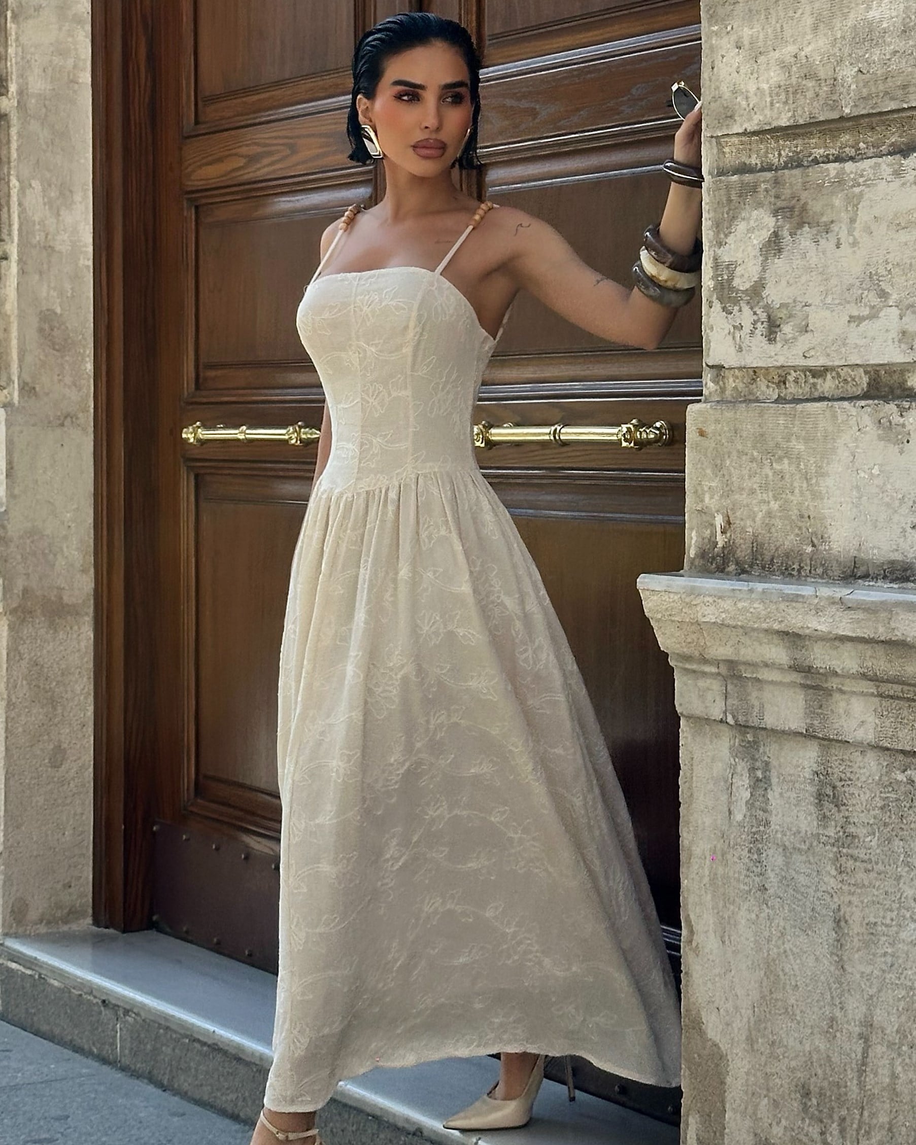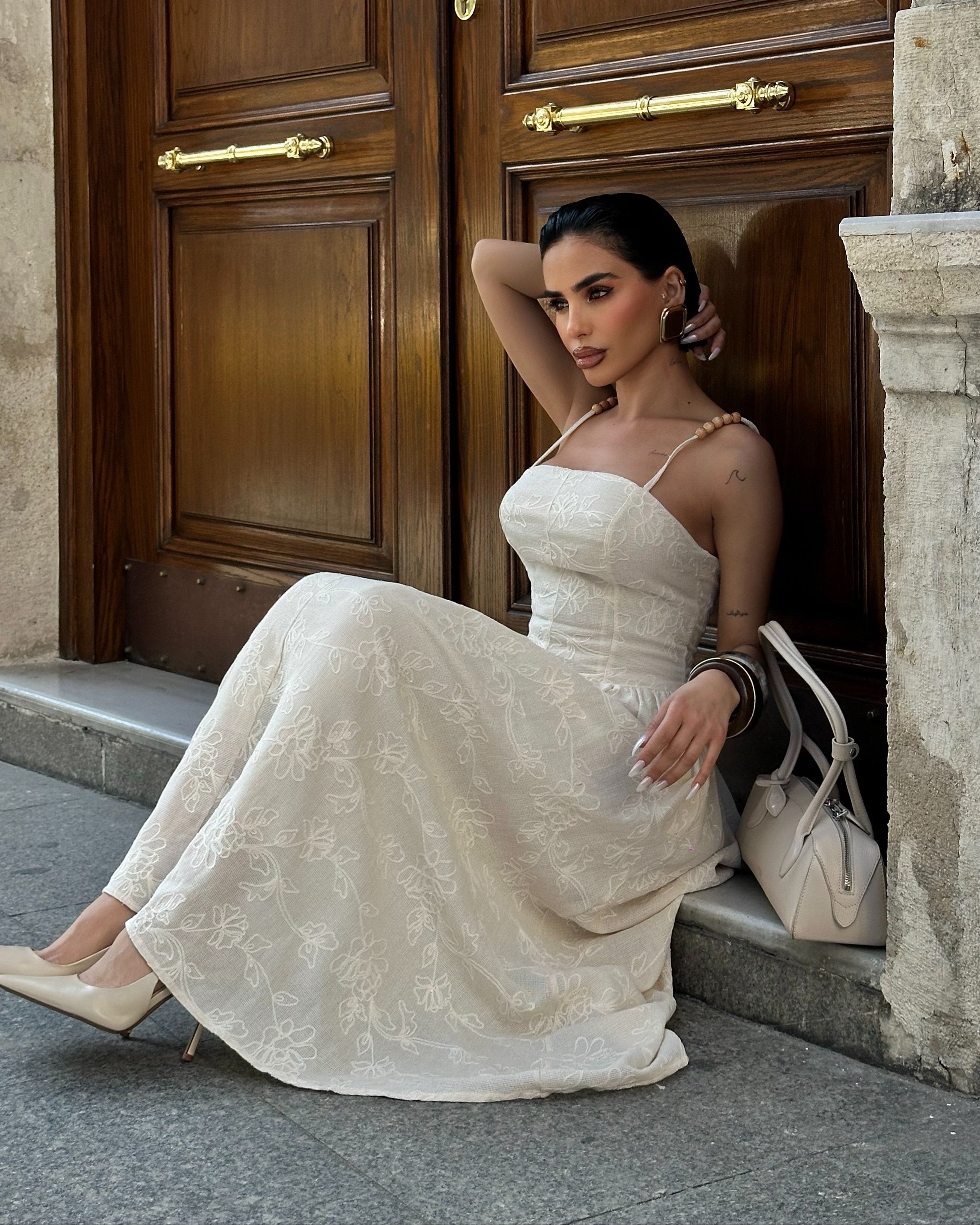 Belly Lined Guipure Dress – Ecru