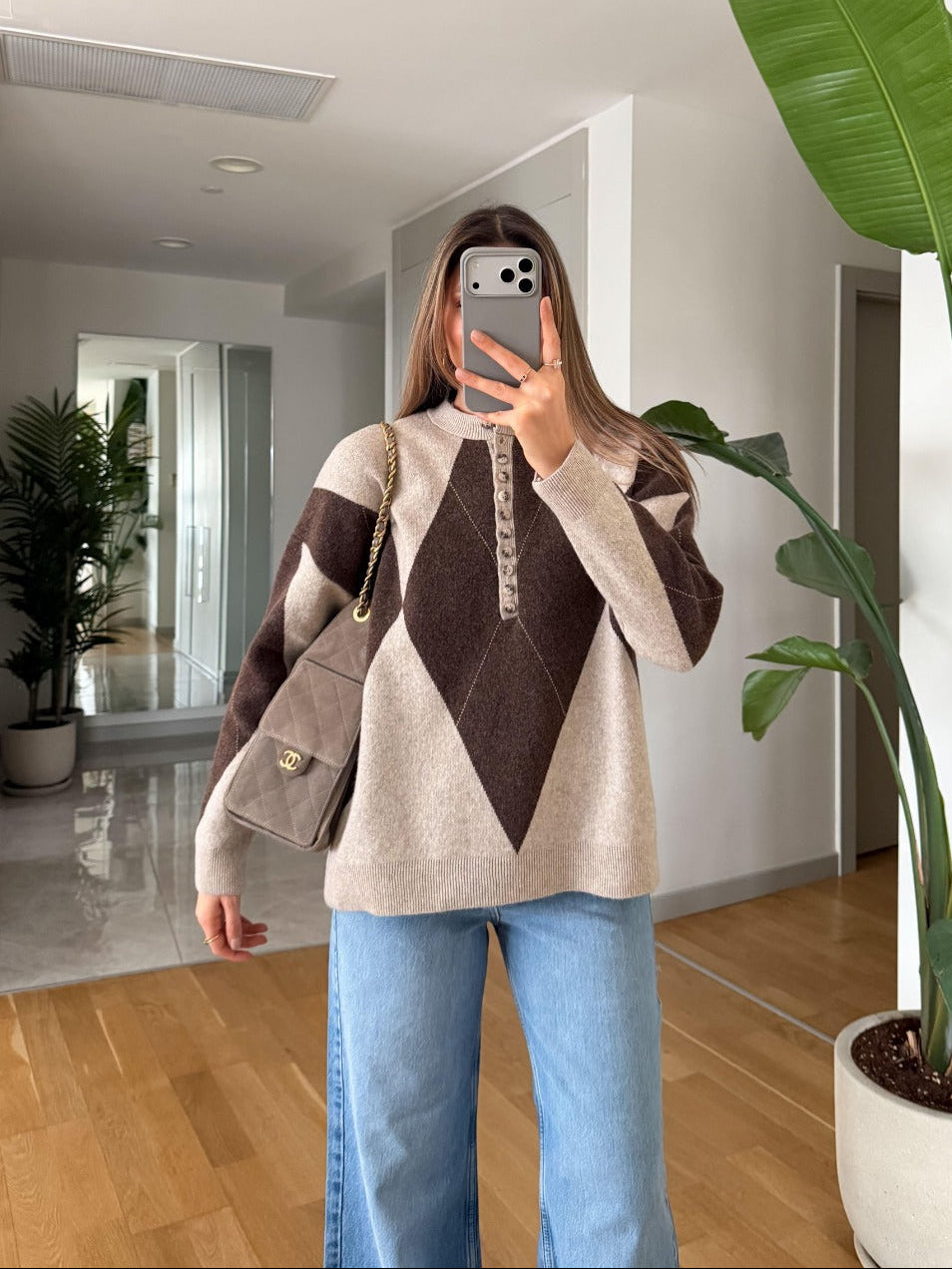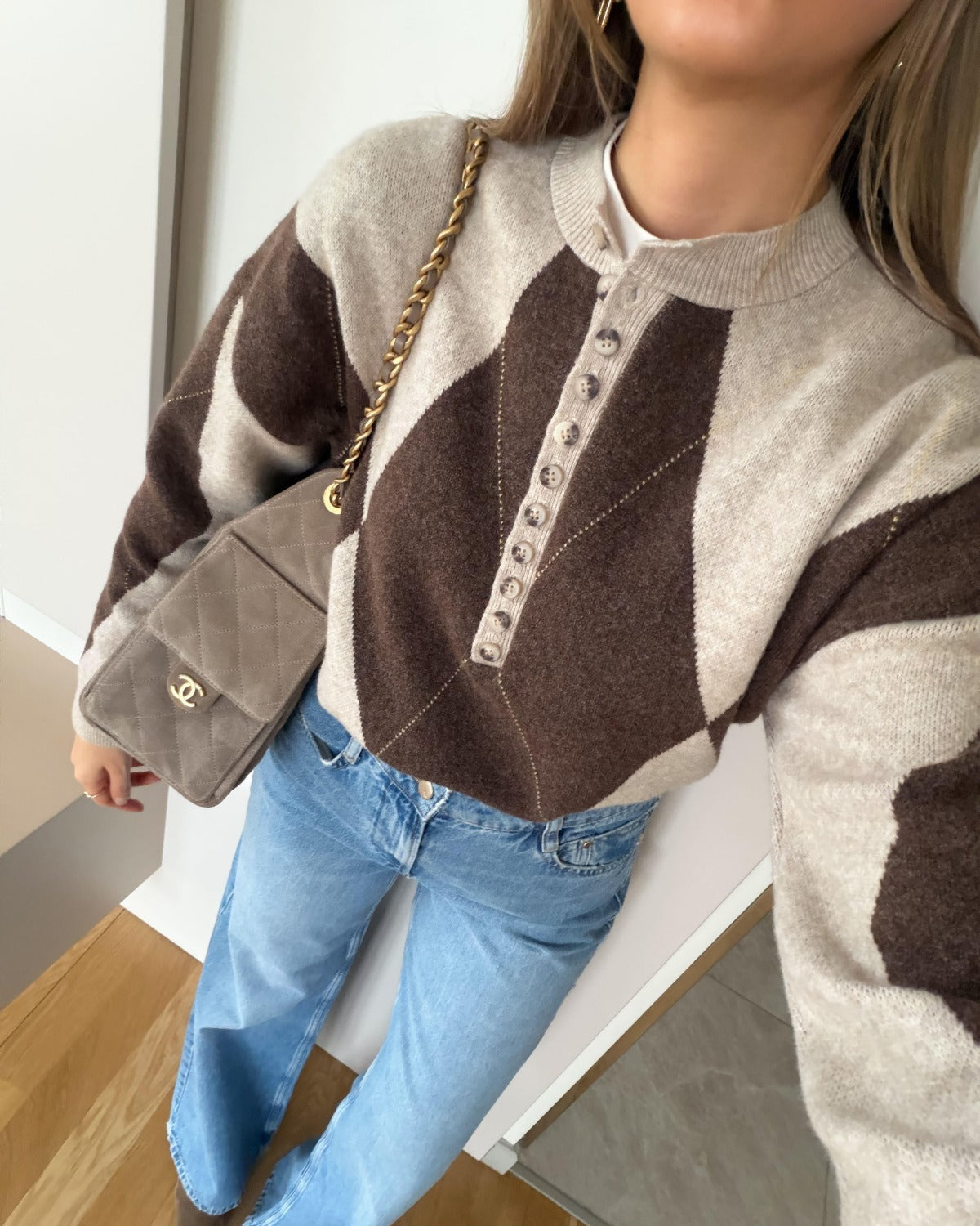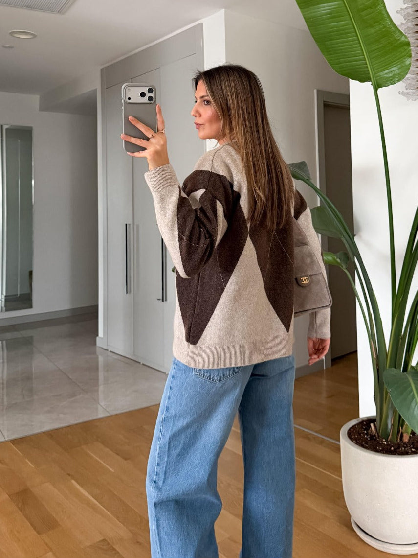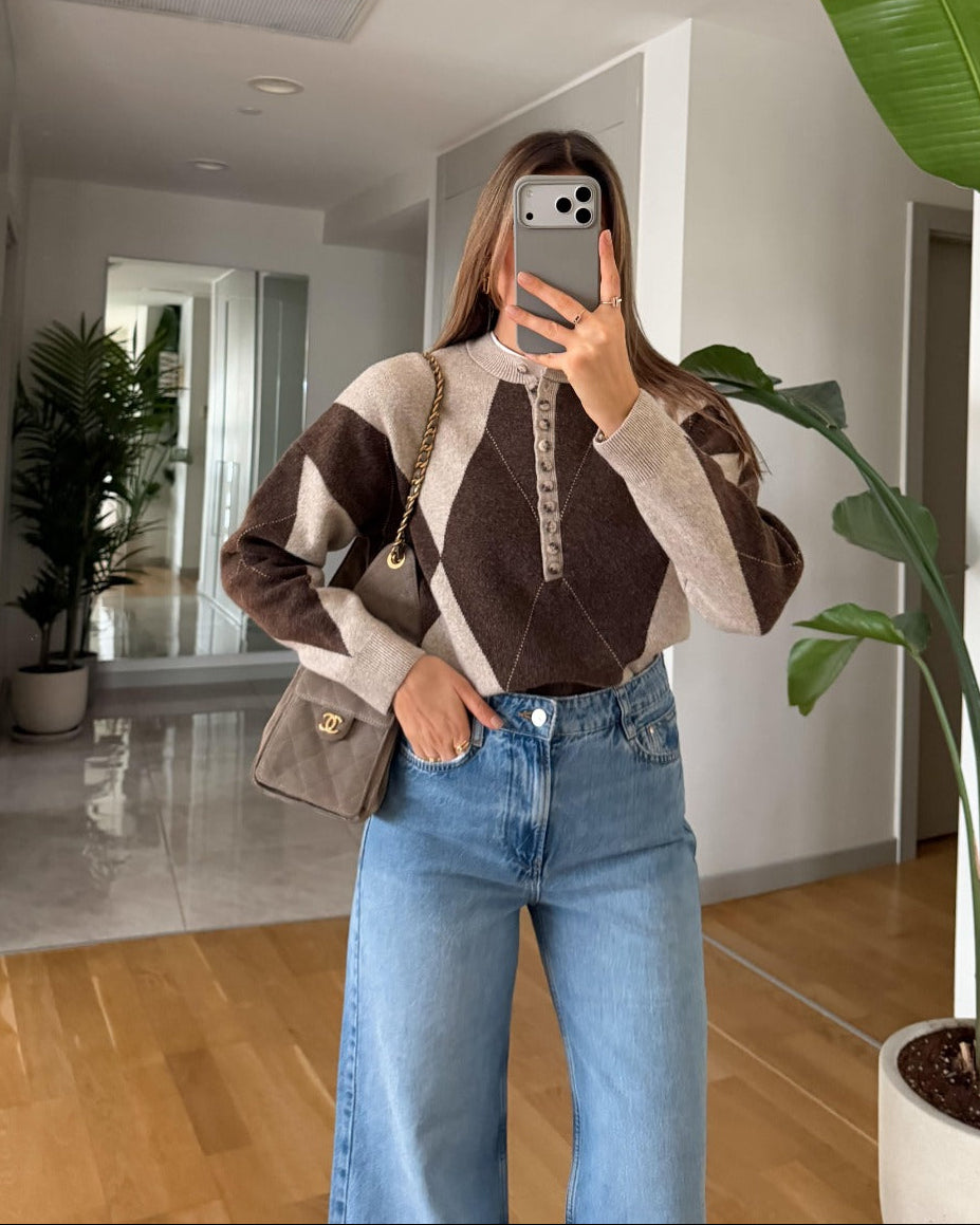 Elena Buttoned Pattern Sweater - Coffee Beige