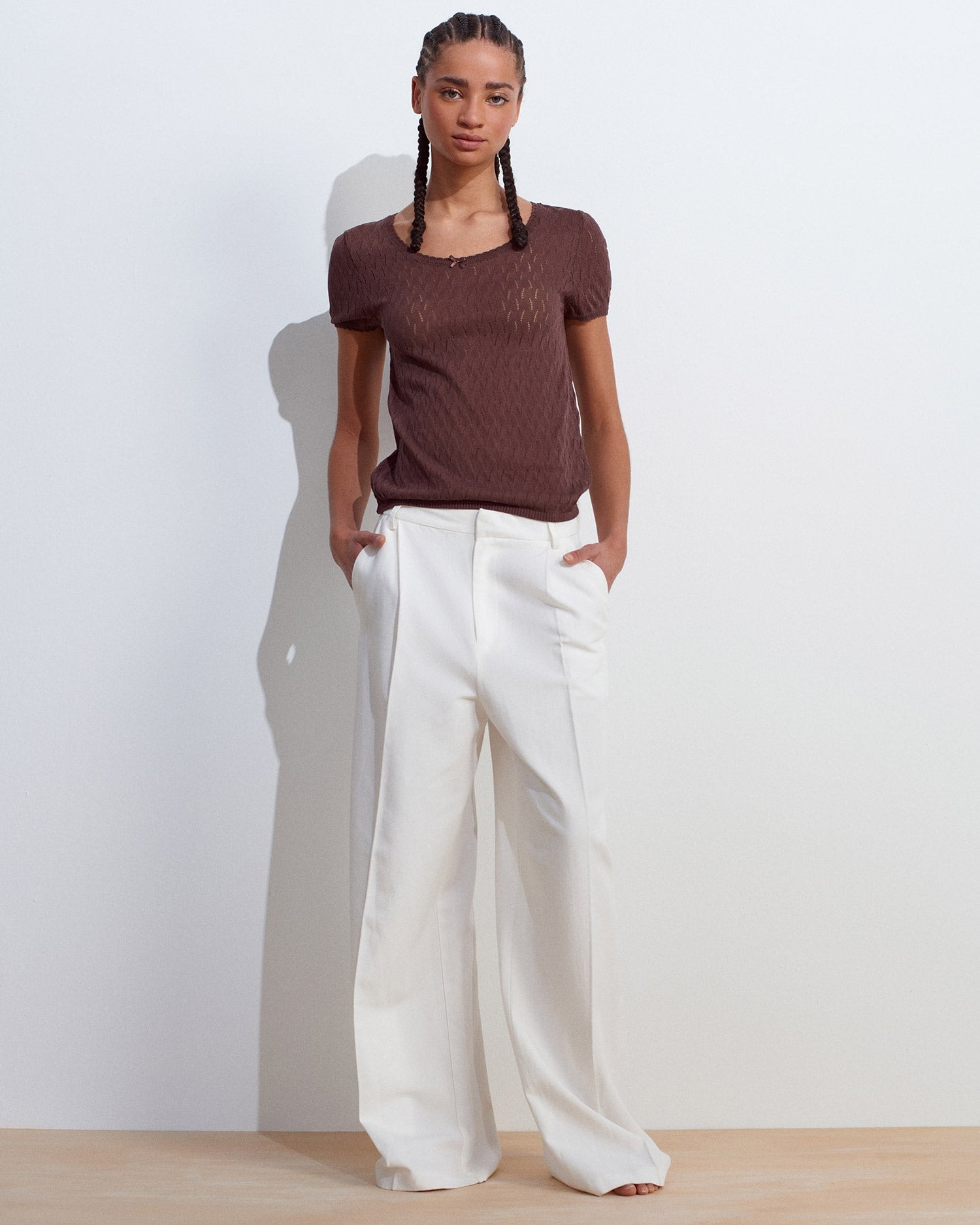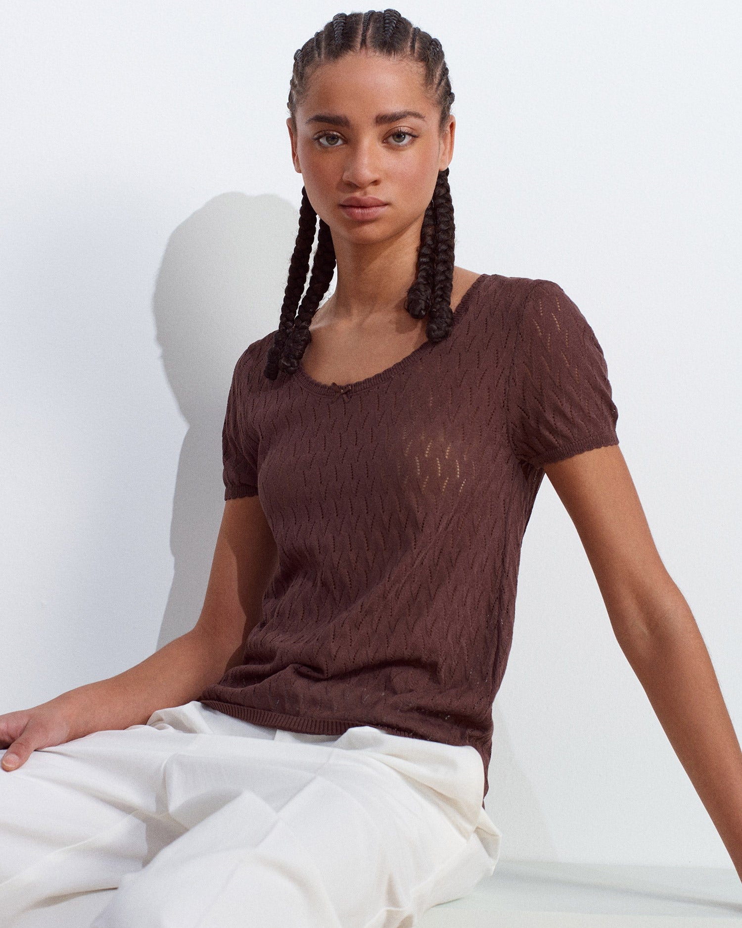 IVY Open Collar Crew Neck Bow Detail –