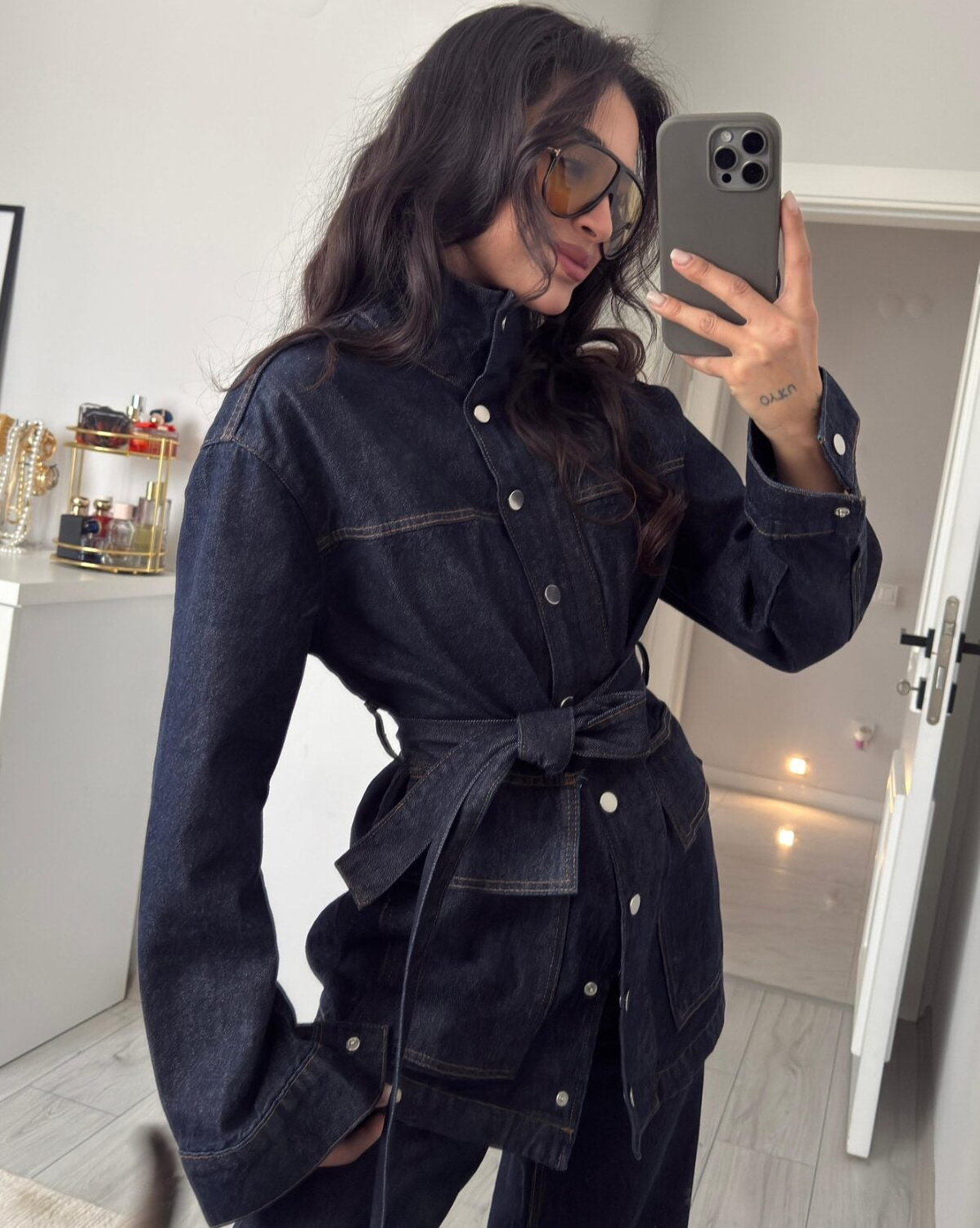 Leroy Snap-Zip Denim Jacket With Pants, Navy Blue