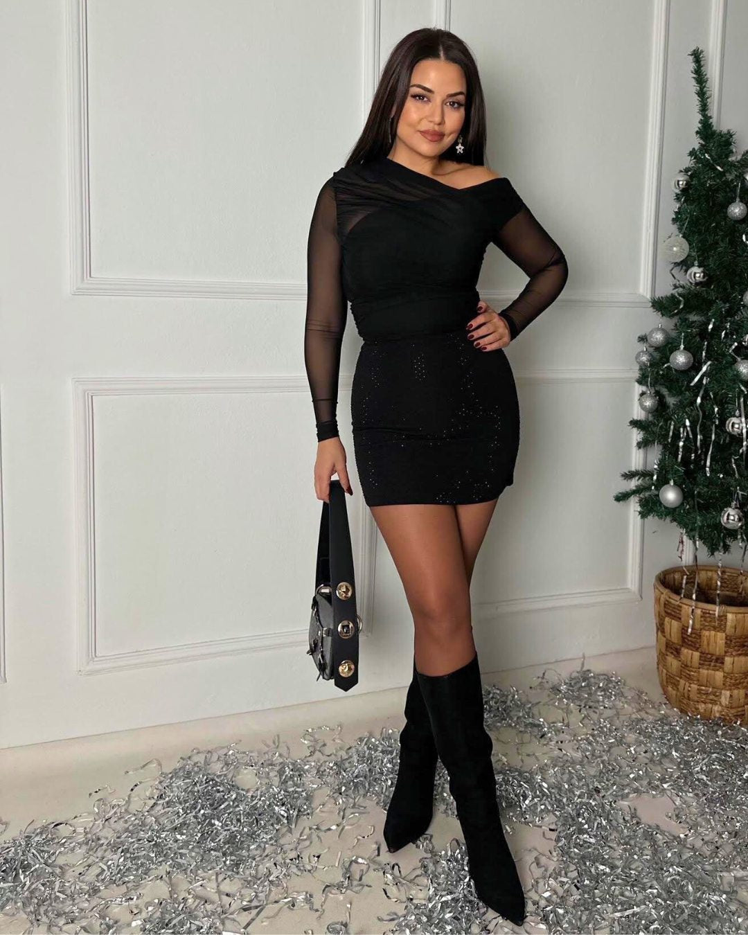 Luxury Quality Black Stoned Skirt
