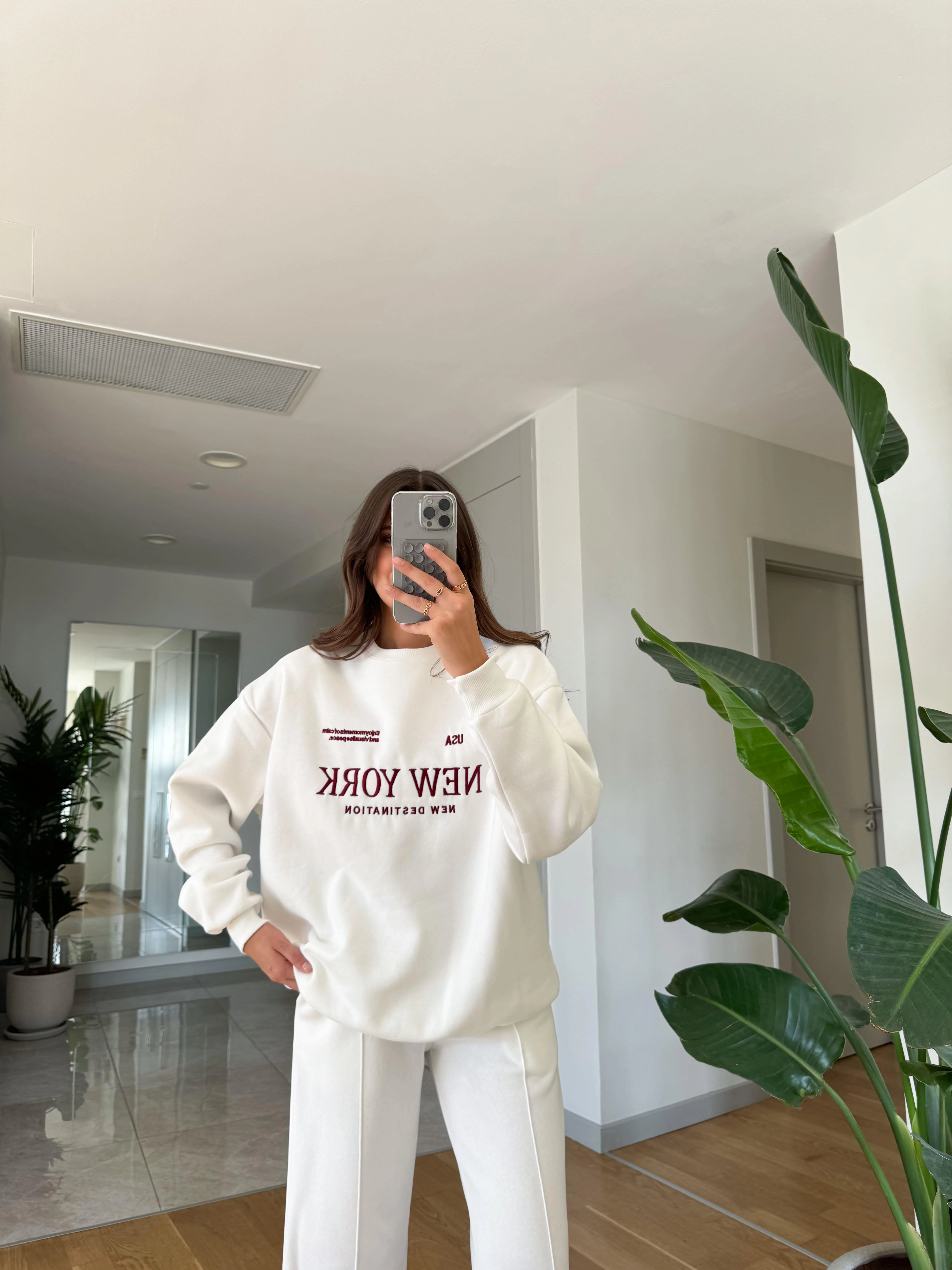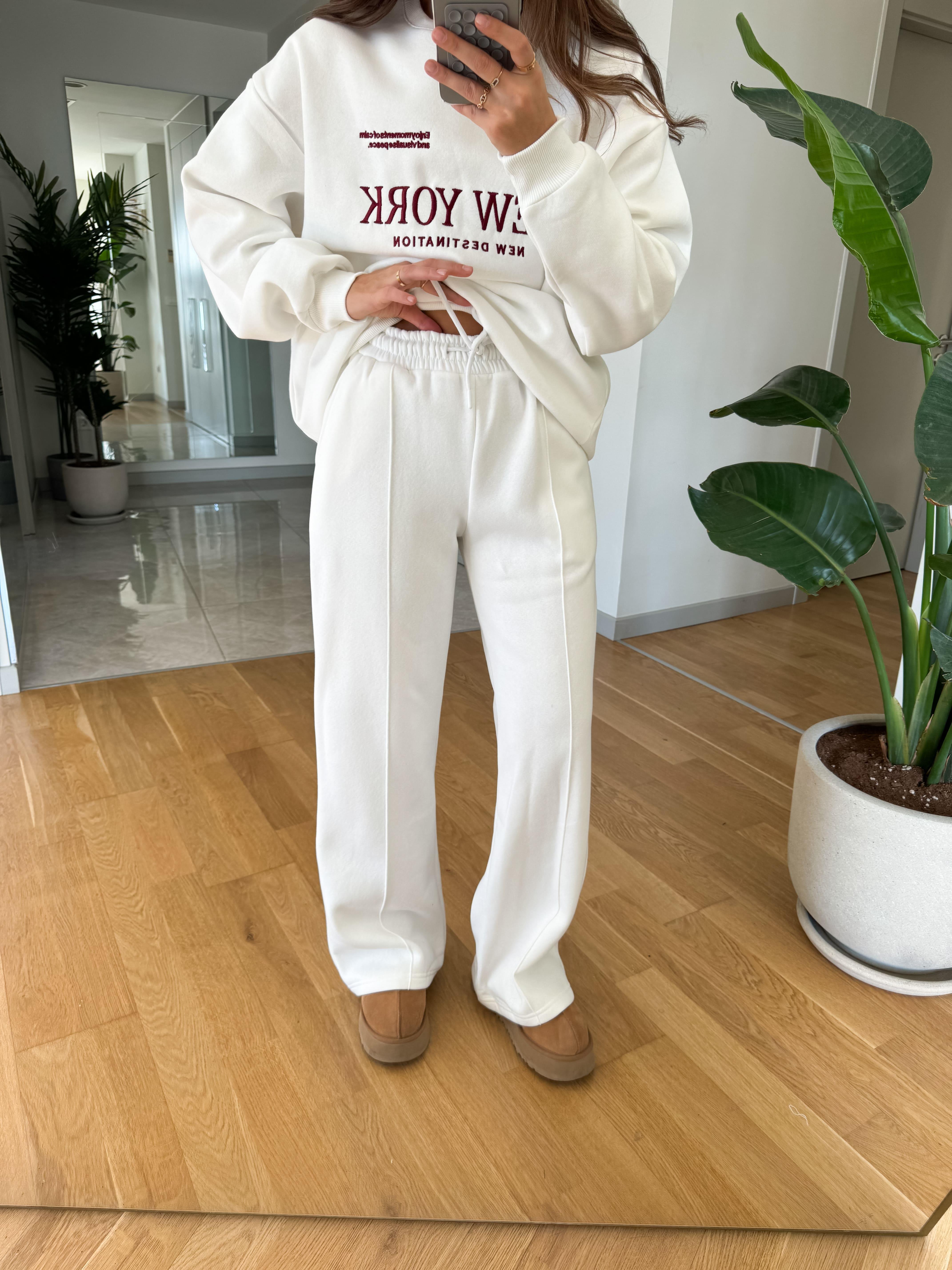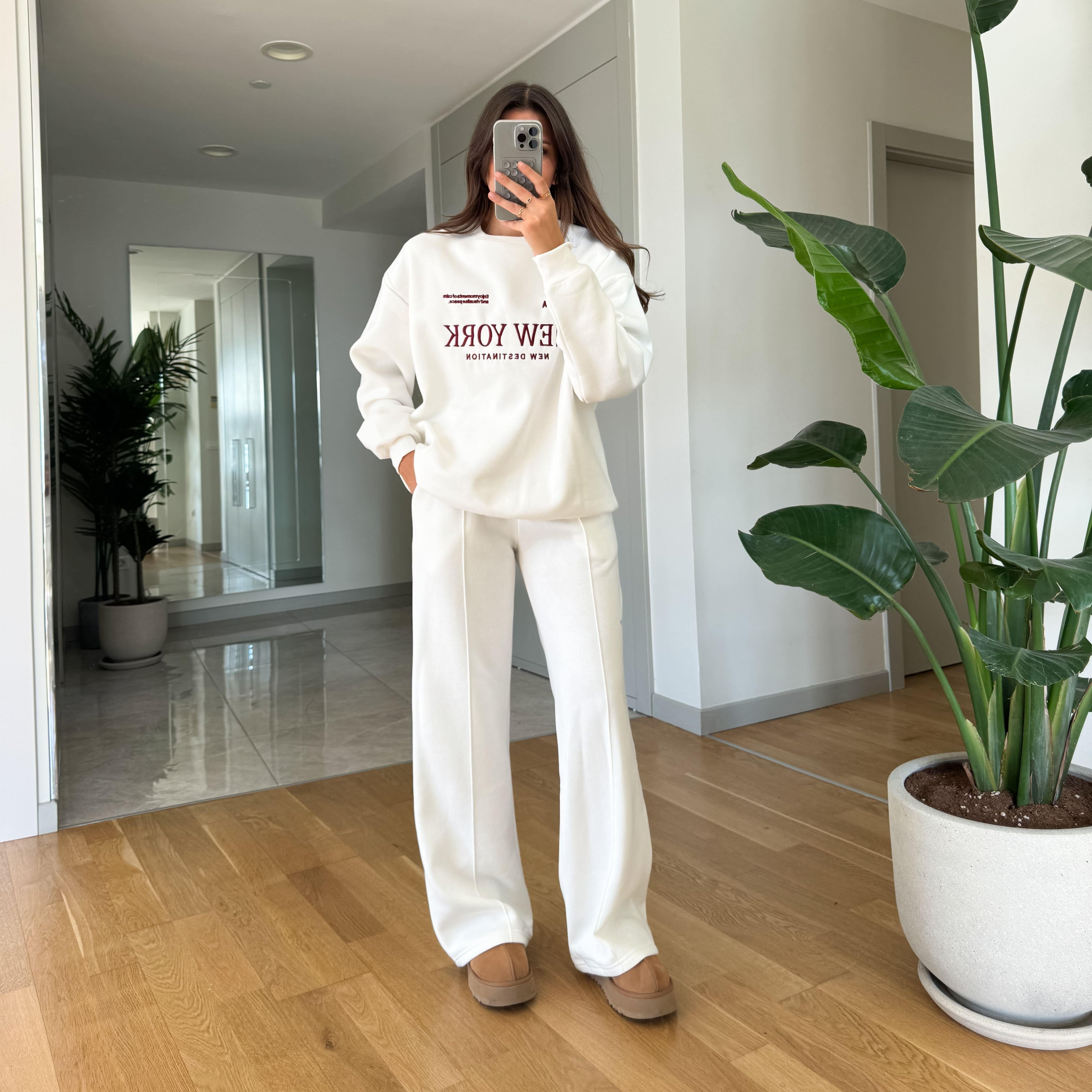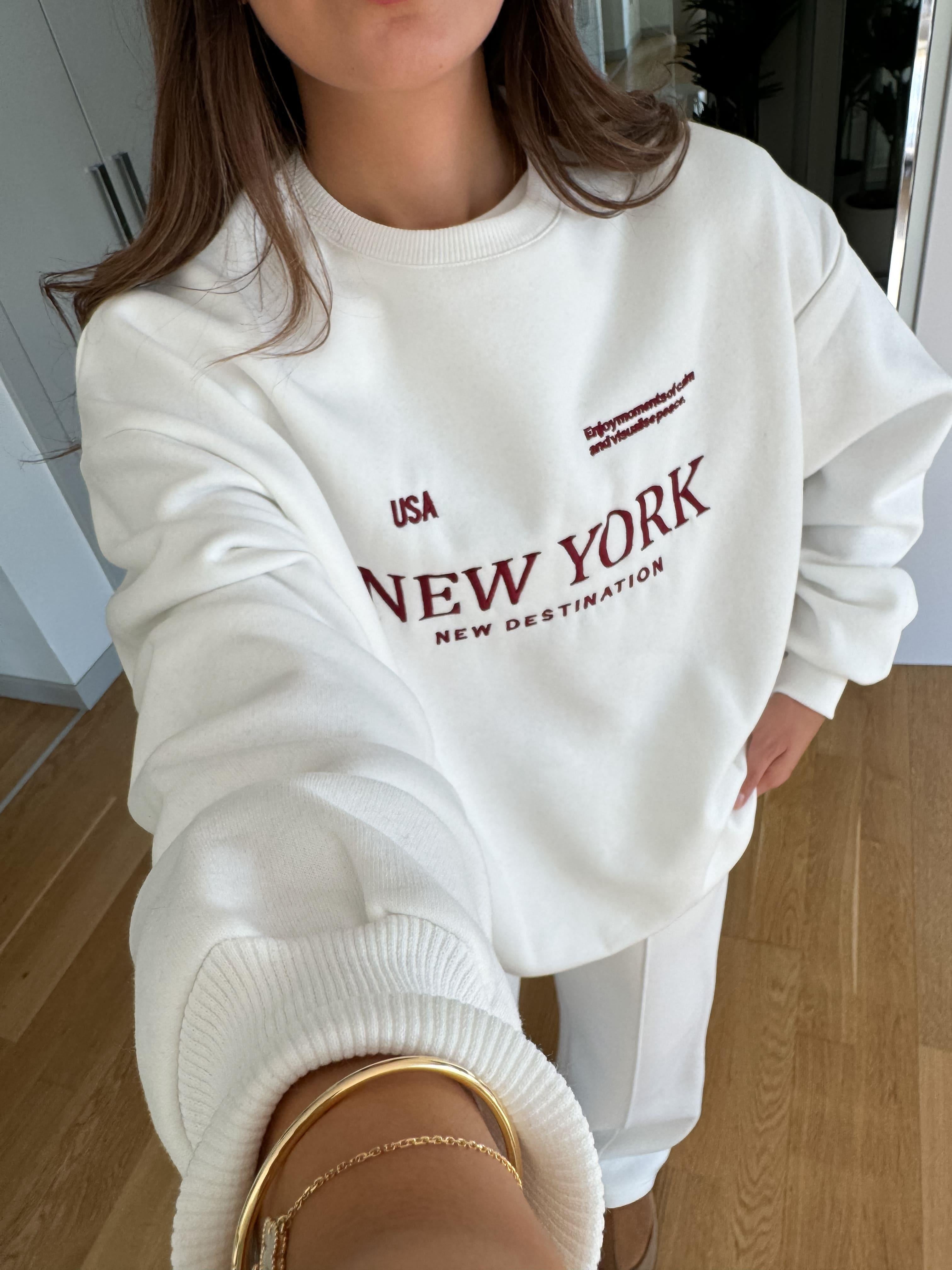 New York Embroidered Raised Tracksuit-Ecru
