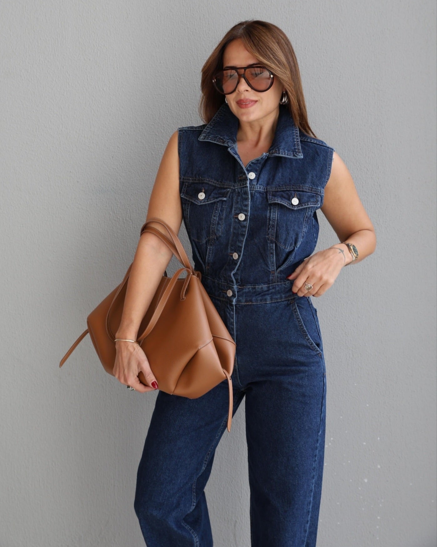 Remi Jumpsuit with Dart Detail - Navy Blue