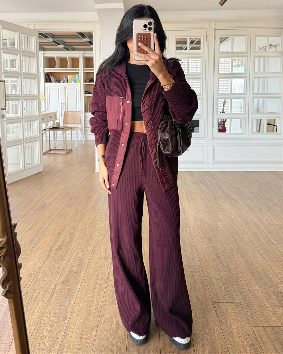 This cozy duo blends a soft cotton-polyester mix with a playful knit texture for ultimate daily comfort. The trendy parachute fabric pocket detail adds a dash of utility chic to your relaxed loungewear aesthetic. Whether you are grabbing coffee or nesting at home, the high-waisted bottoms and top create a flattering silhouette. Slip into this versatile set and feel effortlessly put-together without sacrificing a bit of snuggly softness.