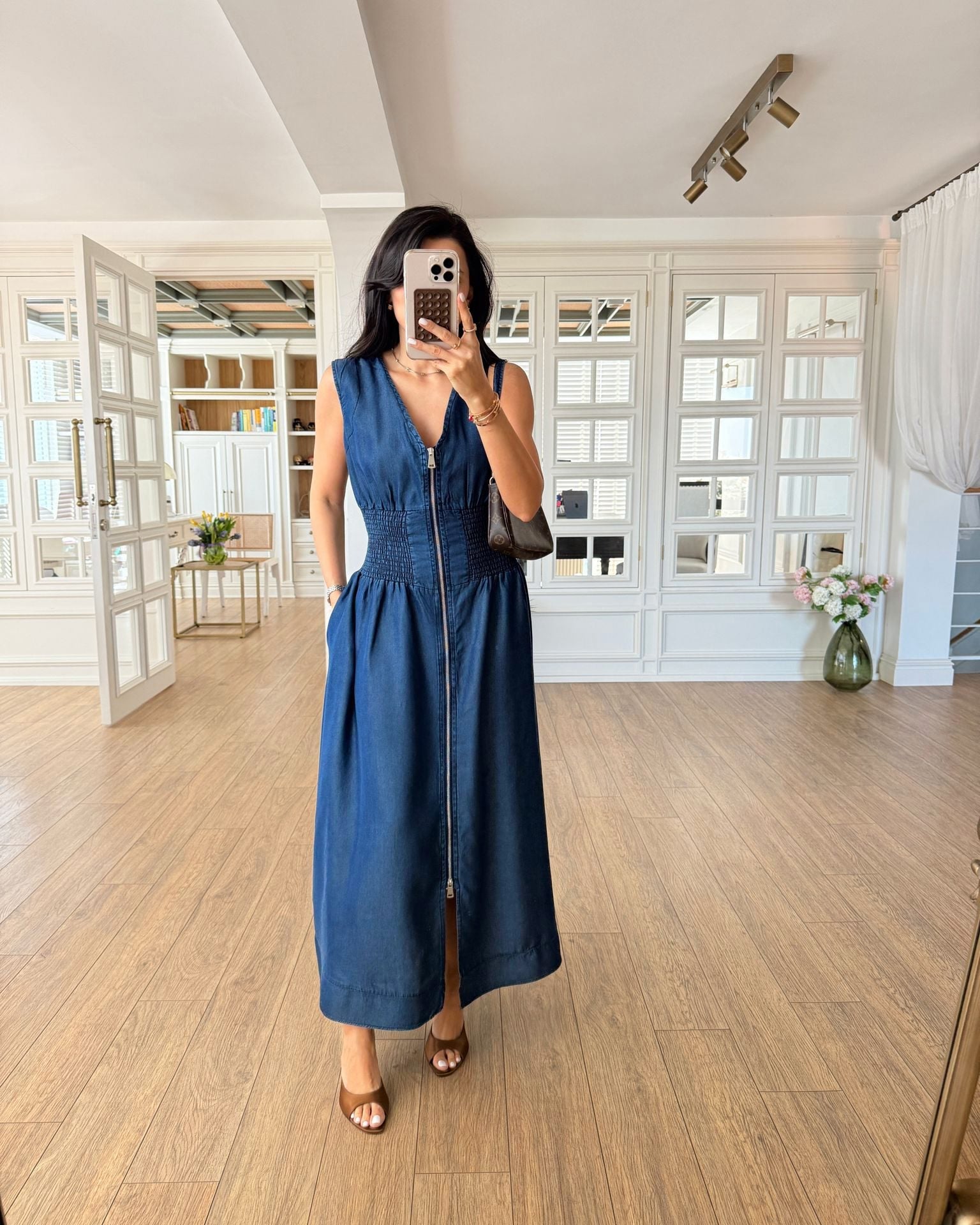 Sisi Denim Dress Elastic Waistband – Navy