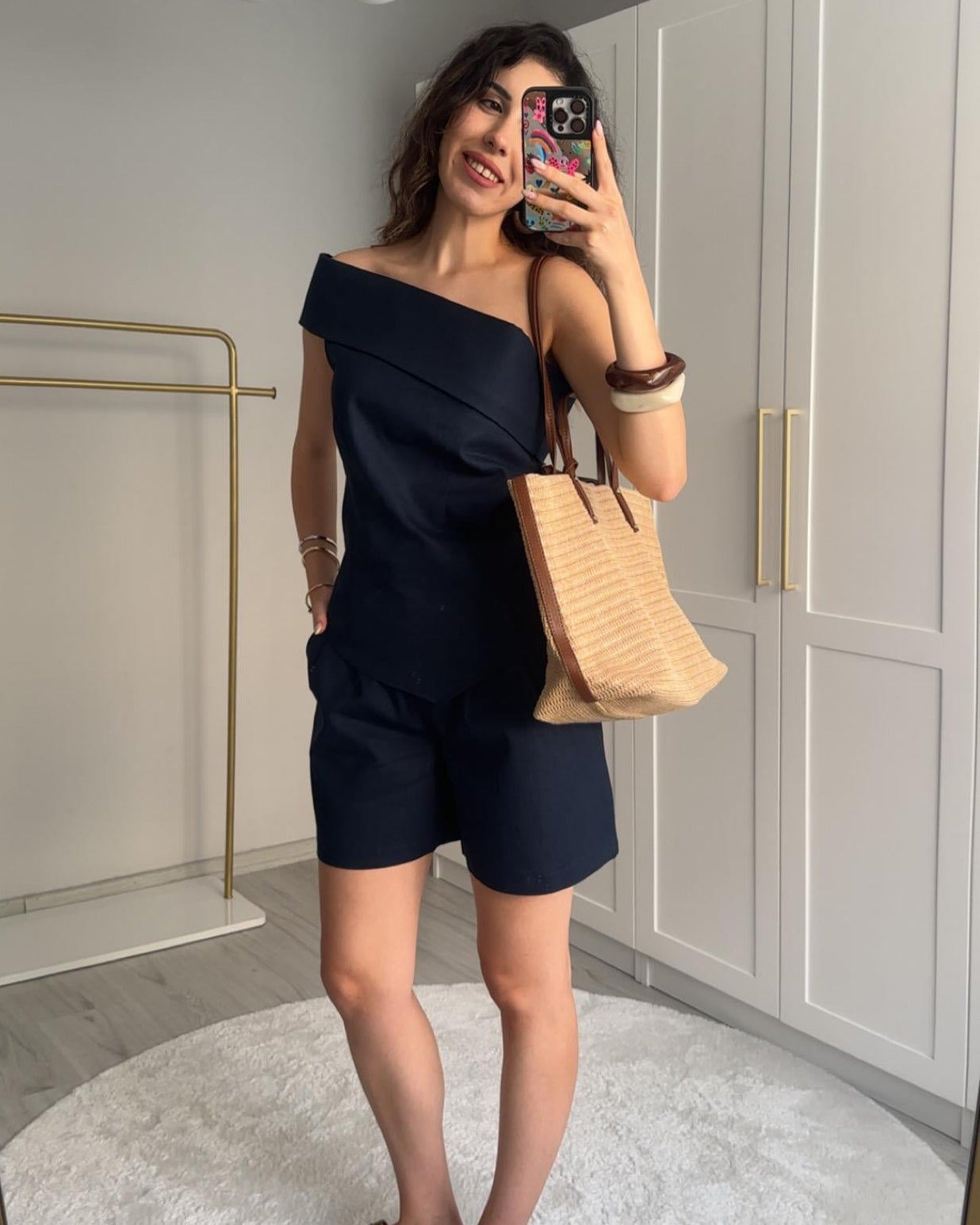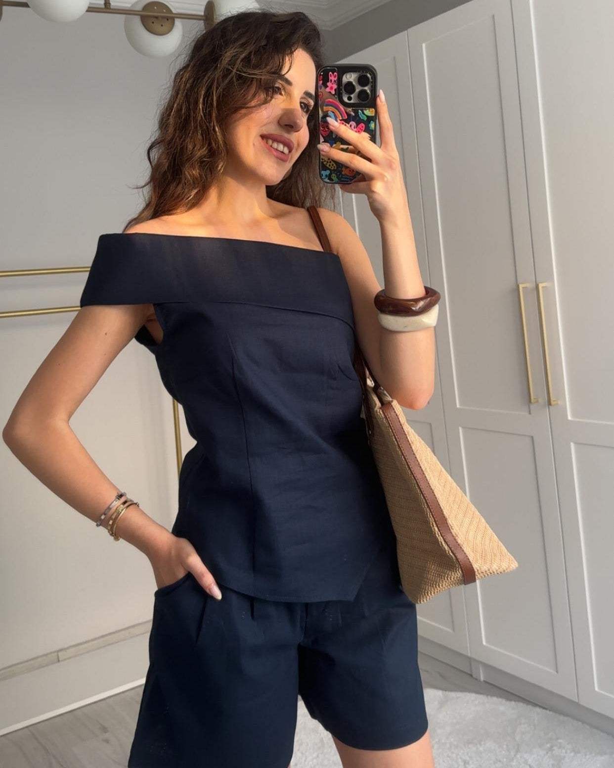 Valeria Set Short With One Shoulder Top – Beige